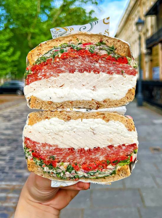 Italian Chicken £6.95 Roast Chicken, Salami, Mozzarella, Tomato, Fresh Parsley, Chilli & Garlic Mayo Category: Sandwiches Ingredients Nutrition Gluten FreeDairy Free